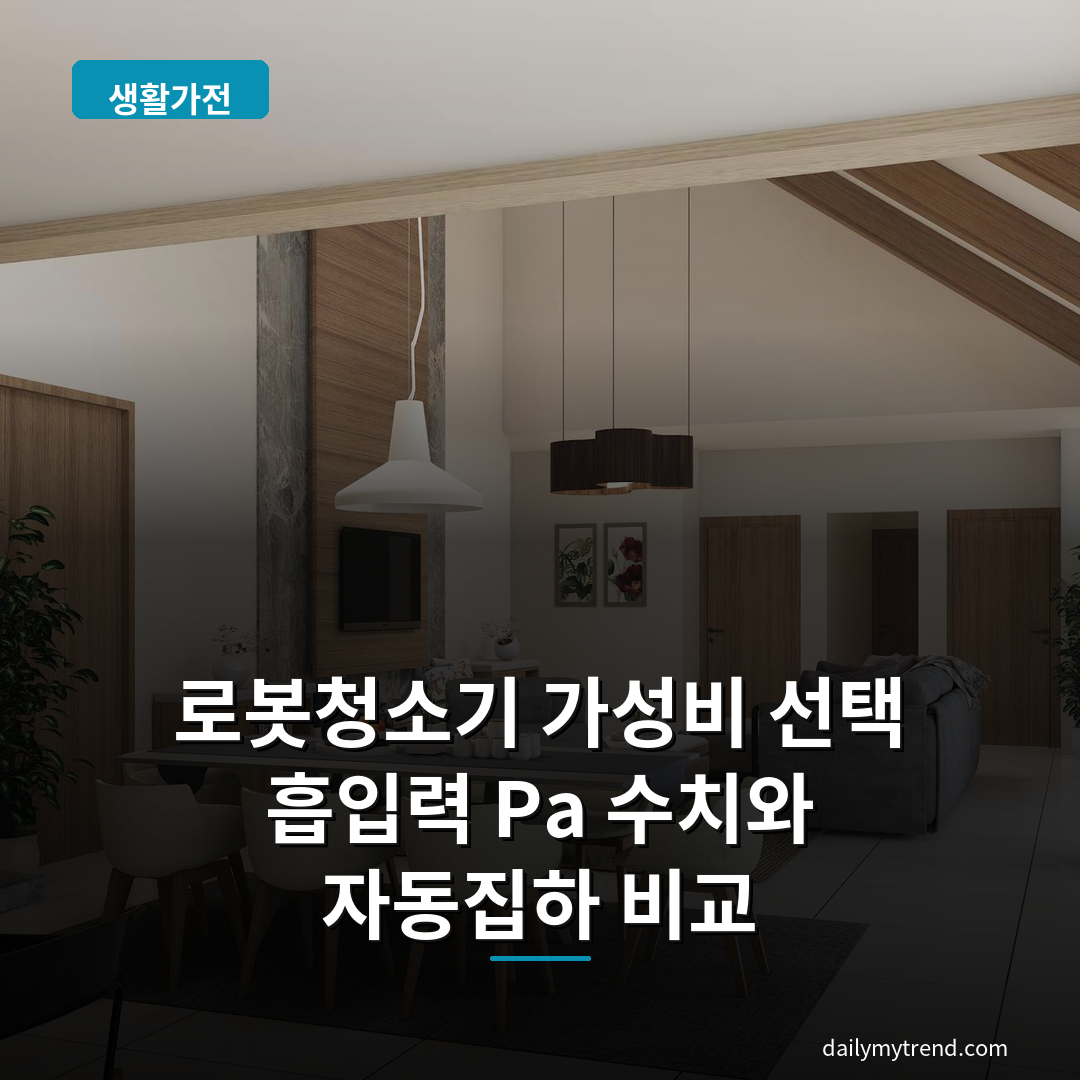 로봇청소기 구매 시 흡입력(Pa)과 자동집하 기능 중 무엇을 우선해야 할까요? 예산과 사용 환경에 따라 최적의 선택이 달라집니다. 고성능 모델은 흡입력과 자동집하를 모두 갖춰 편리함을 더합니다.